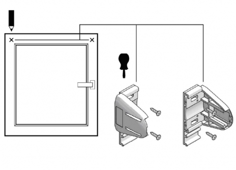 - Fixați cu ajutorul șuruburilor placa din spate și consolele laterale pe fereastră.
